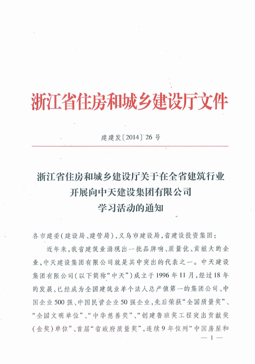 《浙江省住房和城乡建设厅关于在全省建筑行业开展向星空电子建设集团有限公司学习活动的通知》